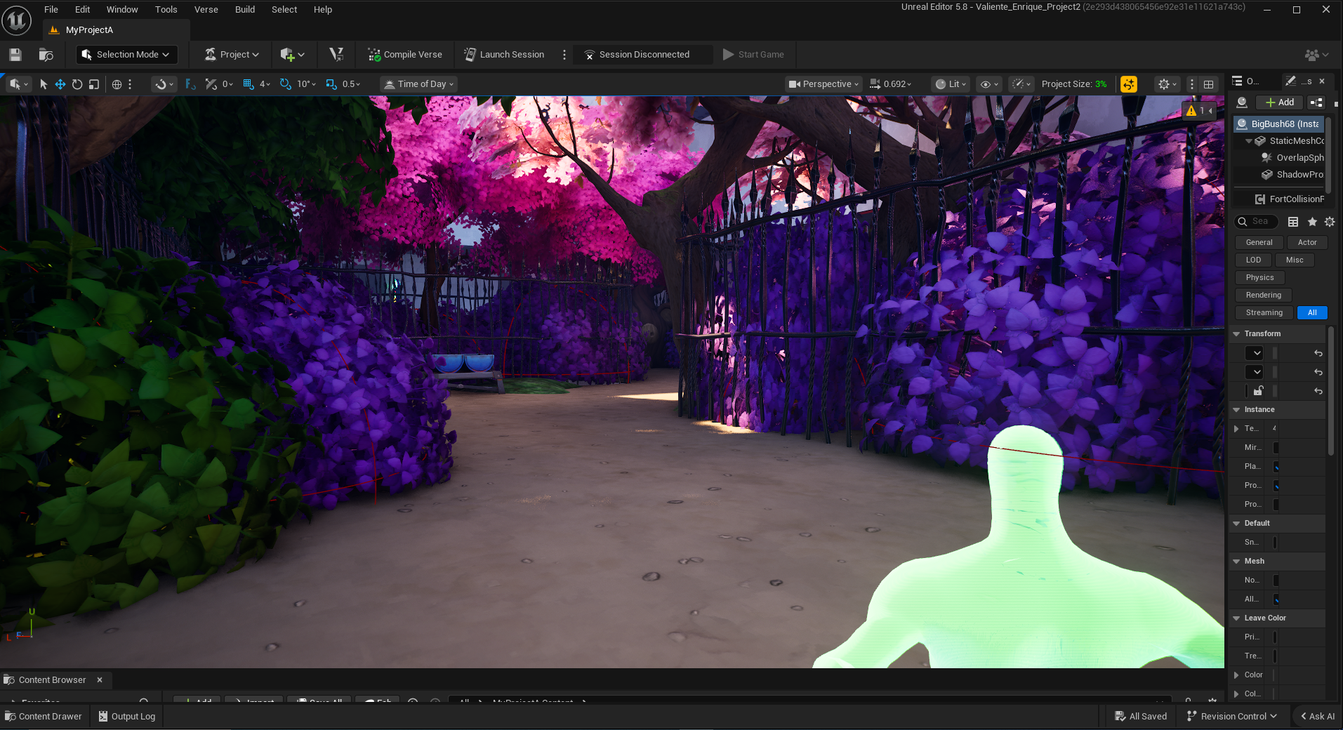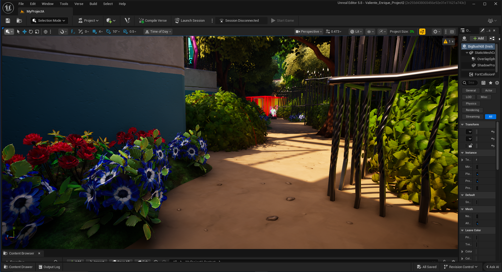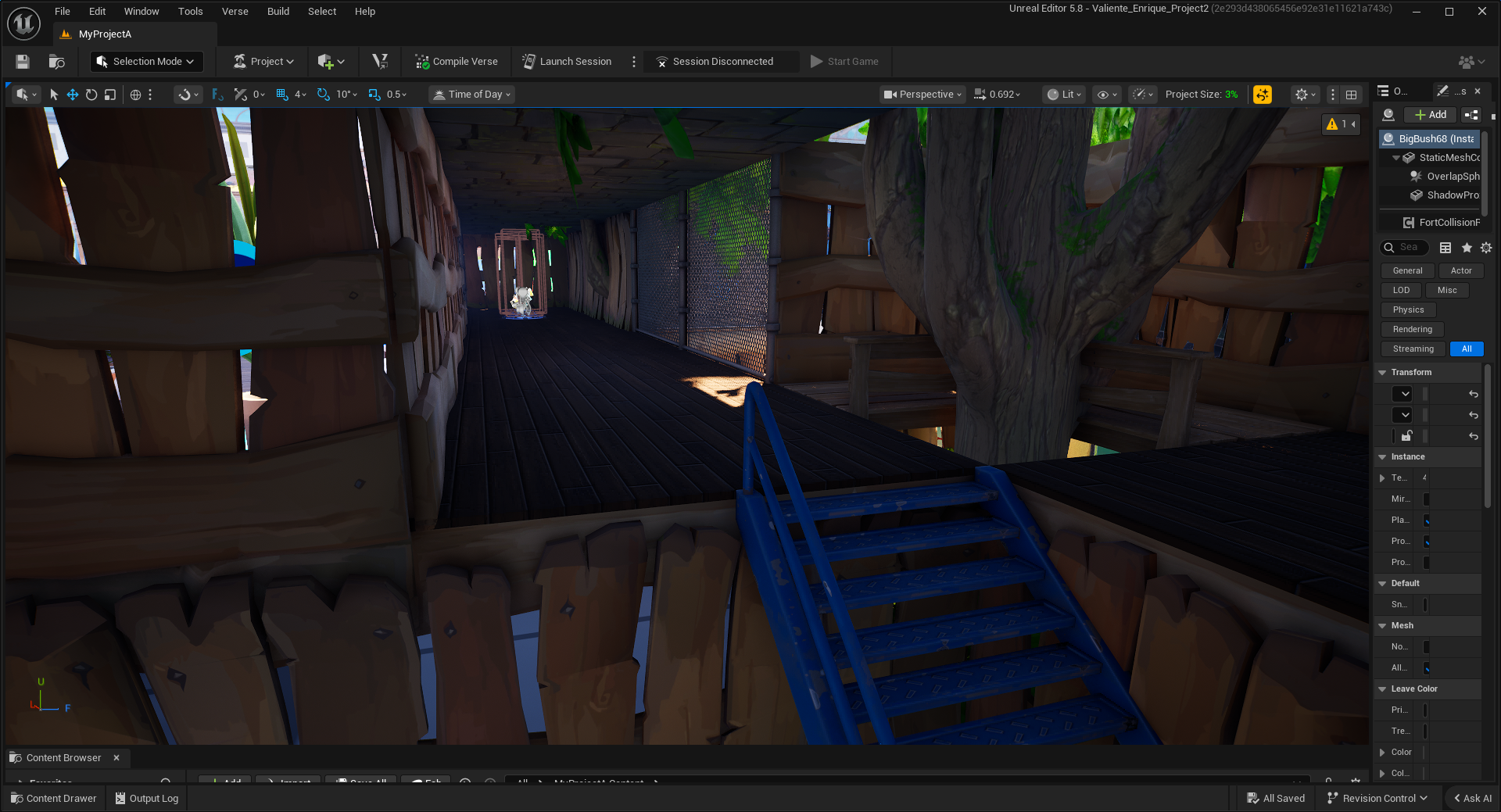 Something important to note is that in the game version. All the trees in this section are blue, with any trees that don’t lead to the main path being green, to further explore color theory.