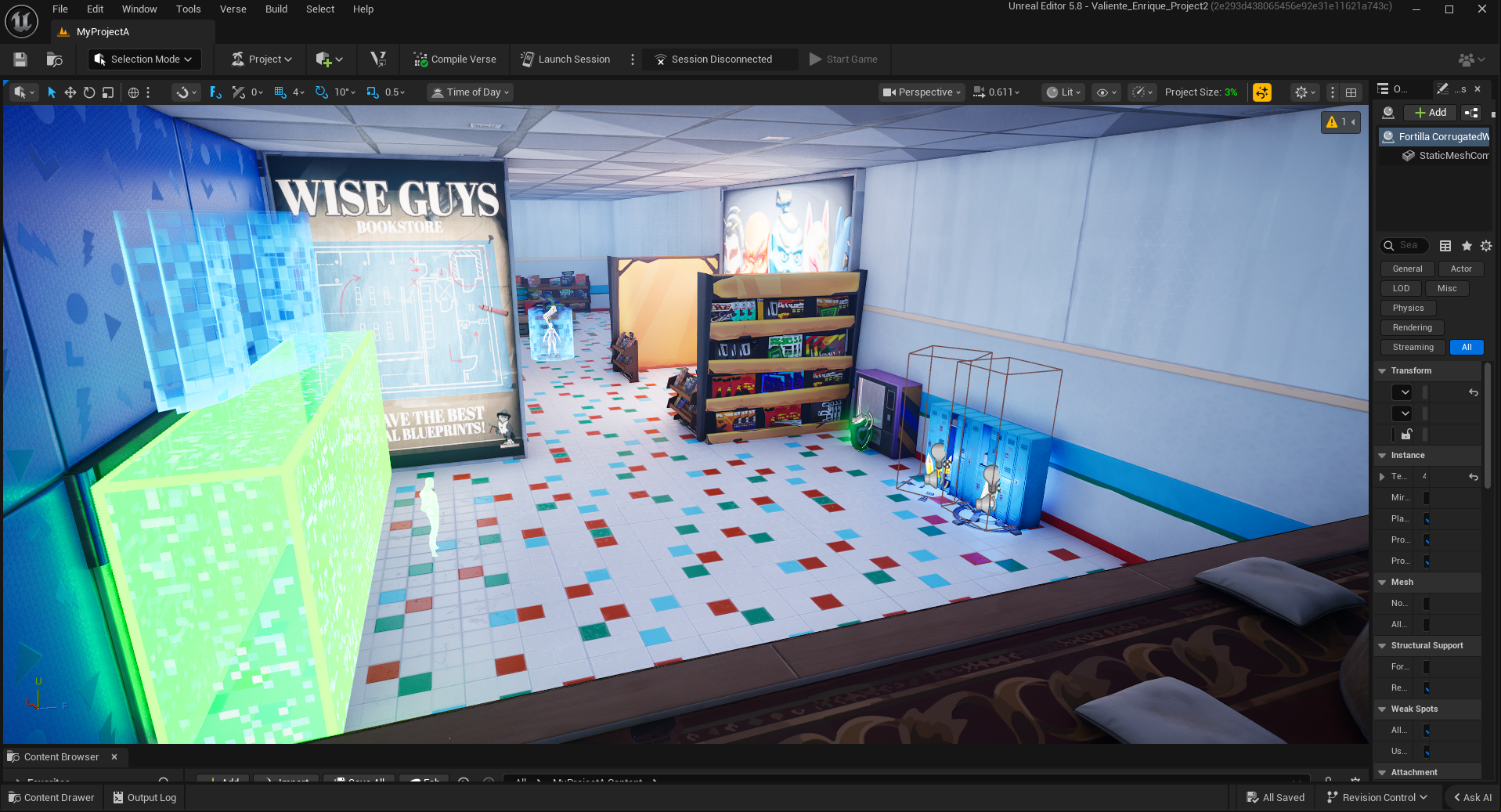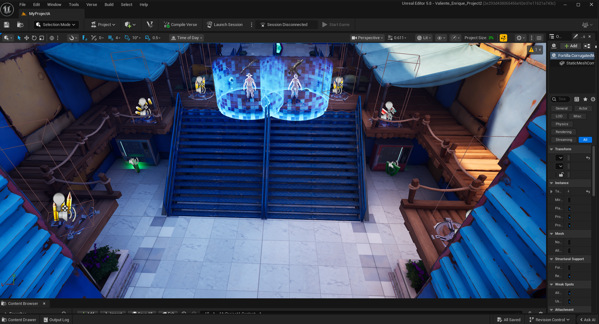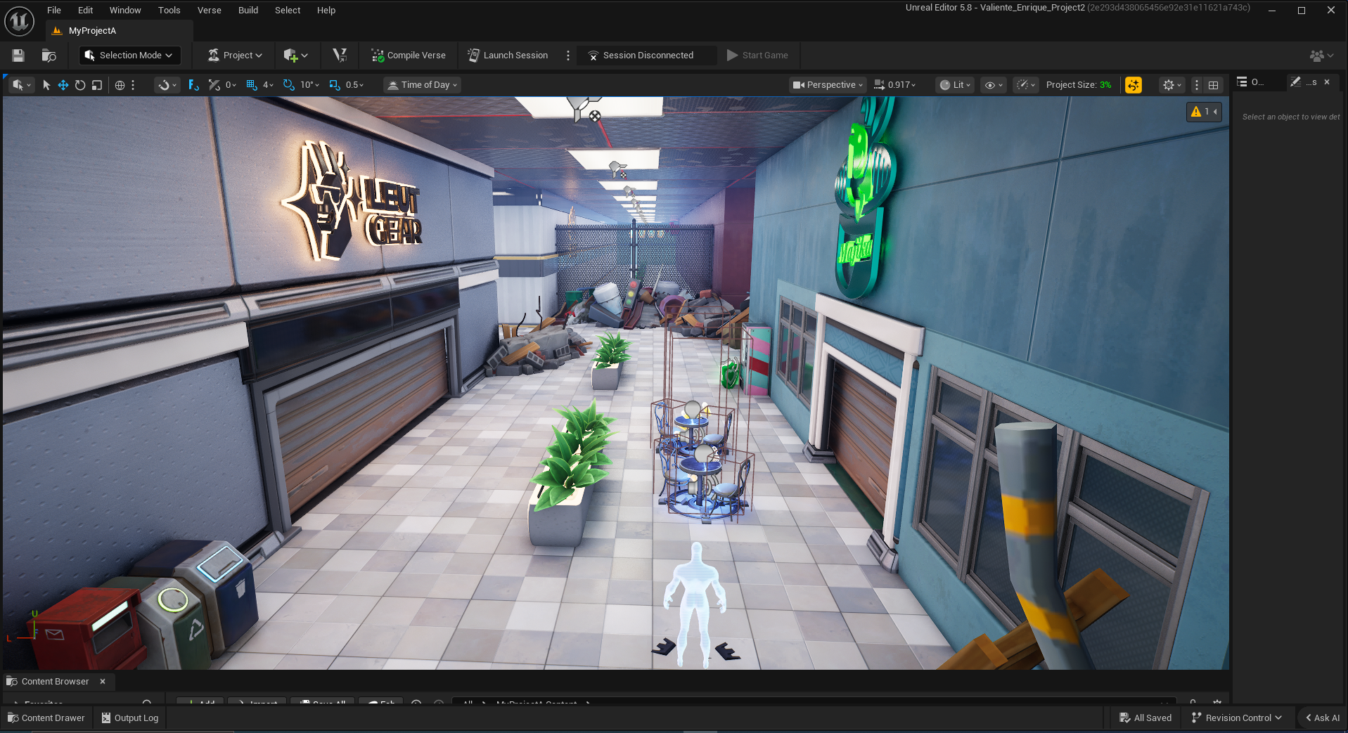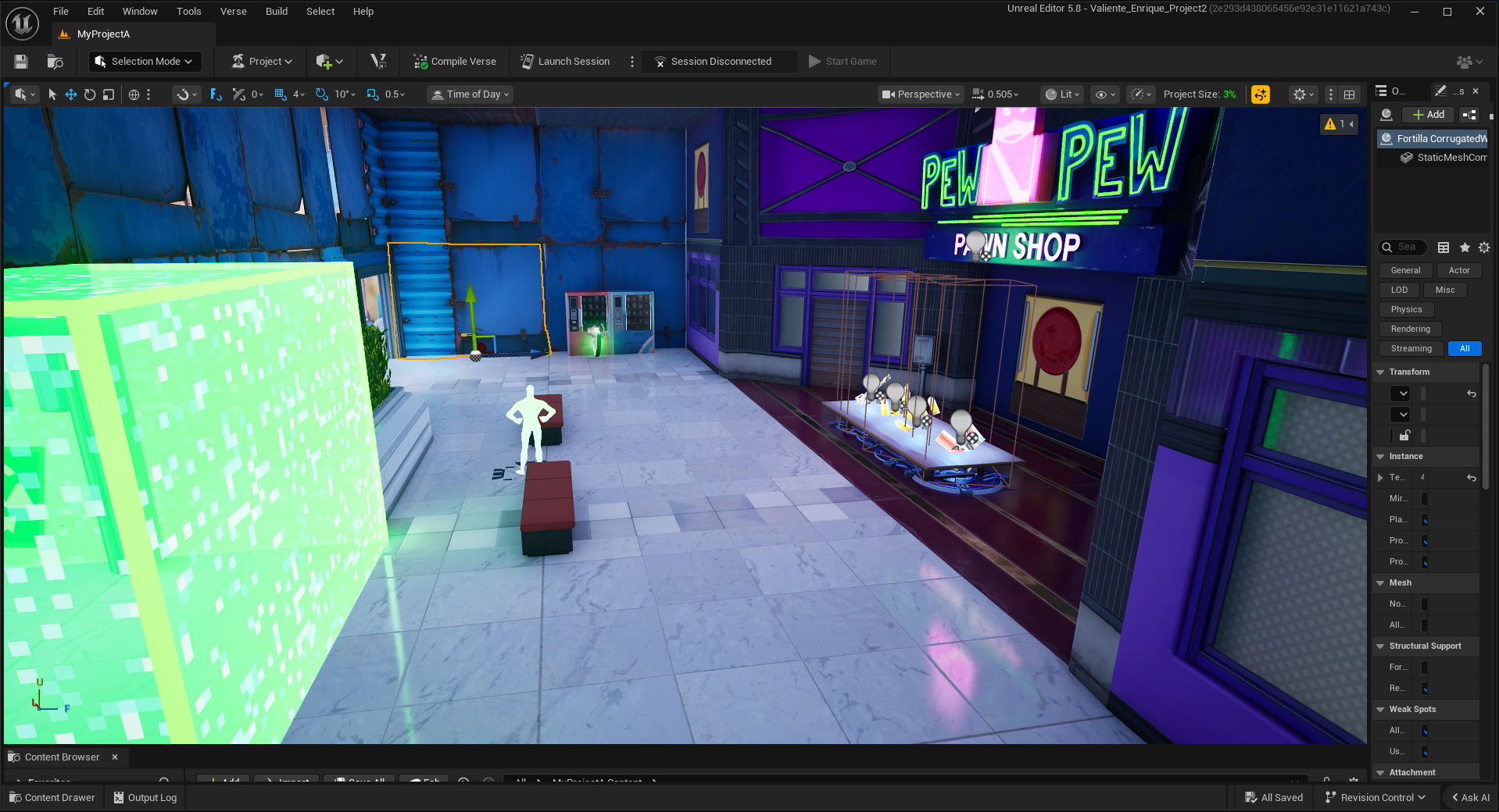 This was my second major project in Unreal Engine for Fortnite, focusing on PVE encounter design. This is also a level based on my work in my worldbuilding class, where I created a world that was a living mall.