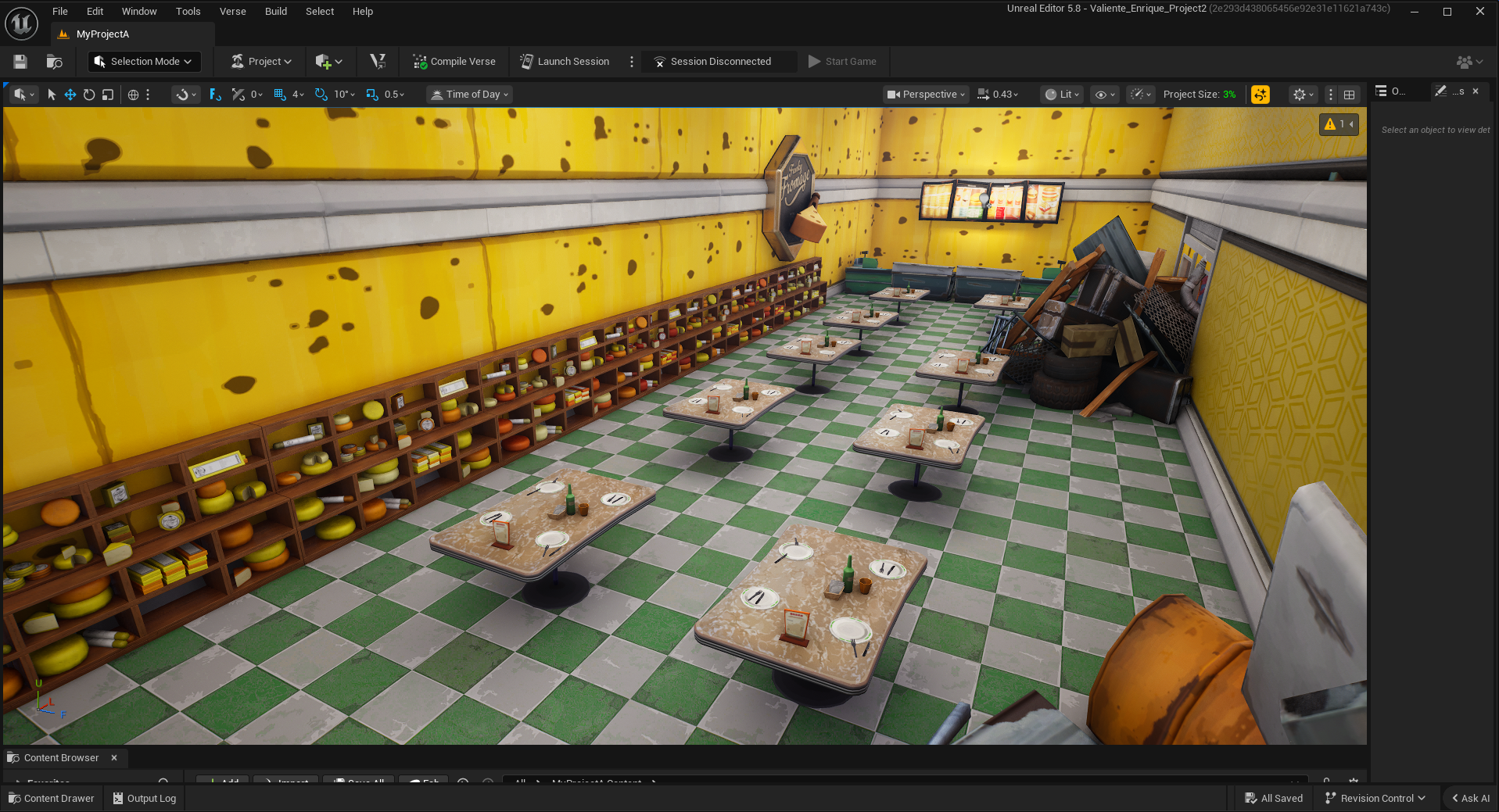 Since the player can peer inside through the cracks of the junk piles that block off access to the restaurant. I made sure to model the inside of the just in case the players decide to check.