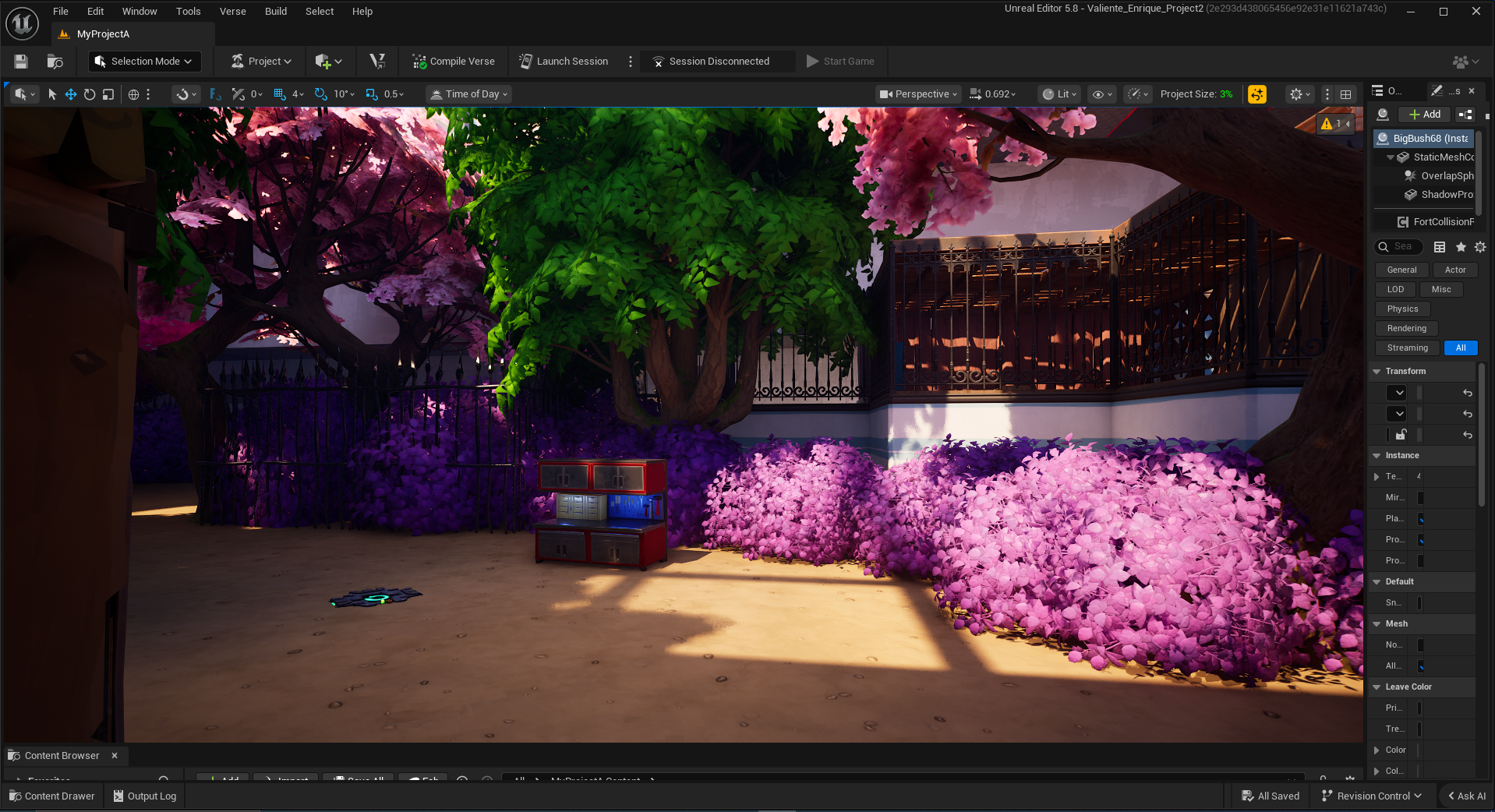 This is the spring section of the park, noted for its intense pink trees reminiscent of Sakura trees. The idea of making this section pink came about from wanting to use the cuddle team tree for the level, thinking it would be a good set pieces for a combat encounter.
